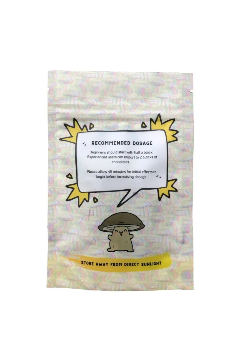 Psilocybin Mushroom Content: Every bag includes two milk chocolate blocks (1000mg/block), totaling 2000mg of psilocybin mushrooms.